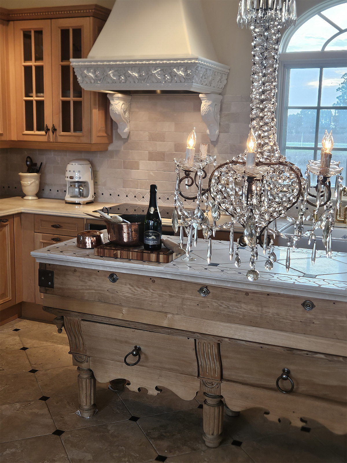 The exquisitely furnished chateau sleeps six and features a gourmet kitchen, marble bathrooms, laundry service, elevator, radiant heated floors, cable TVs, high-speed internet, security features, fireplace, effervescent spa tub, and electric car charging stations.